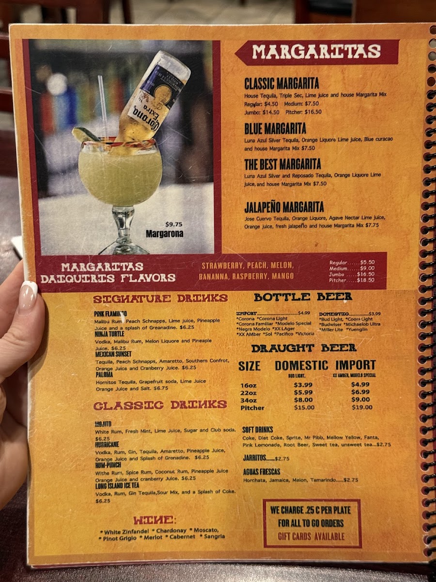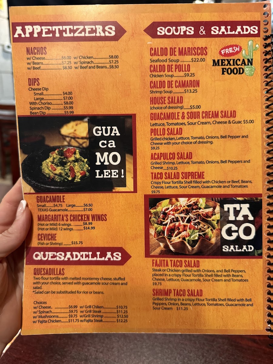 The menu at Margaritas Mexican Restaurant offers a balanced selection of traditional Mexican dishes and comforting flavors, presented in a casual and inviting style. Guests can find a variety of options suited for different times of day, whether it’s a relaxed lunch with fajitas and tacos or a lively dinner featuring steak Mexicano and seafood like mojarras frita or ceviche.