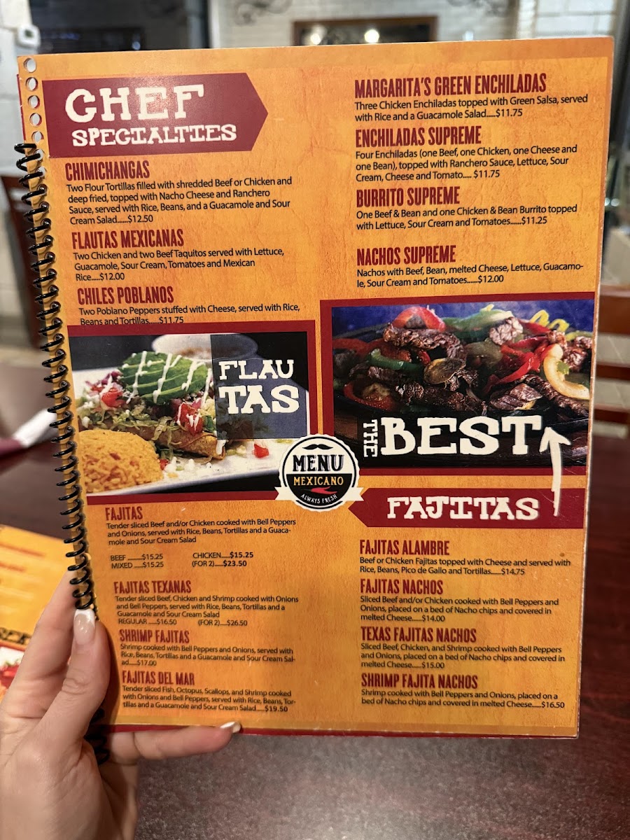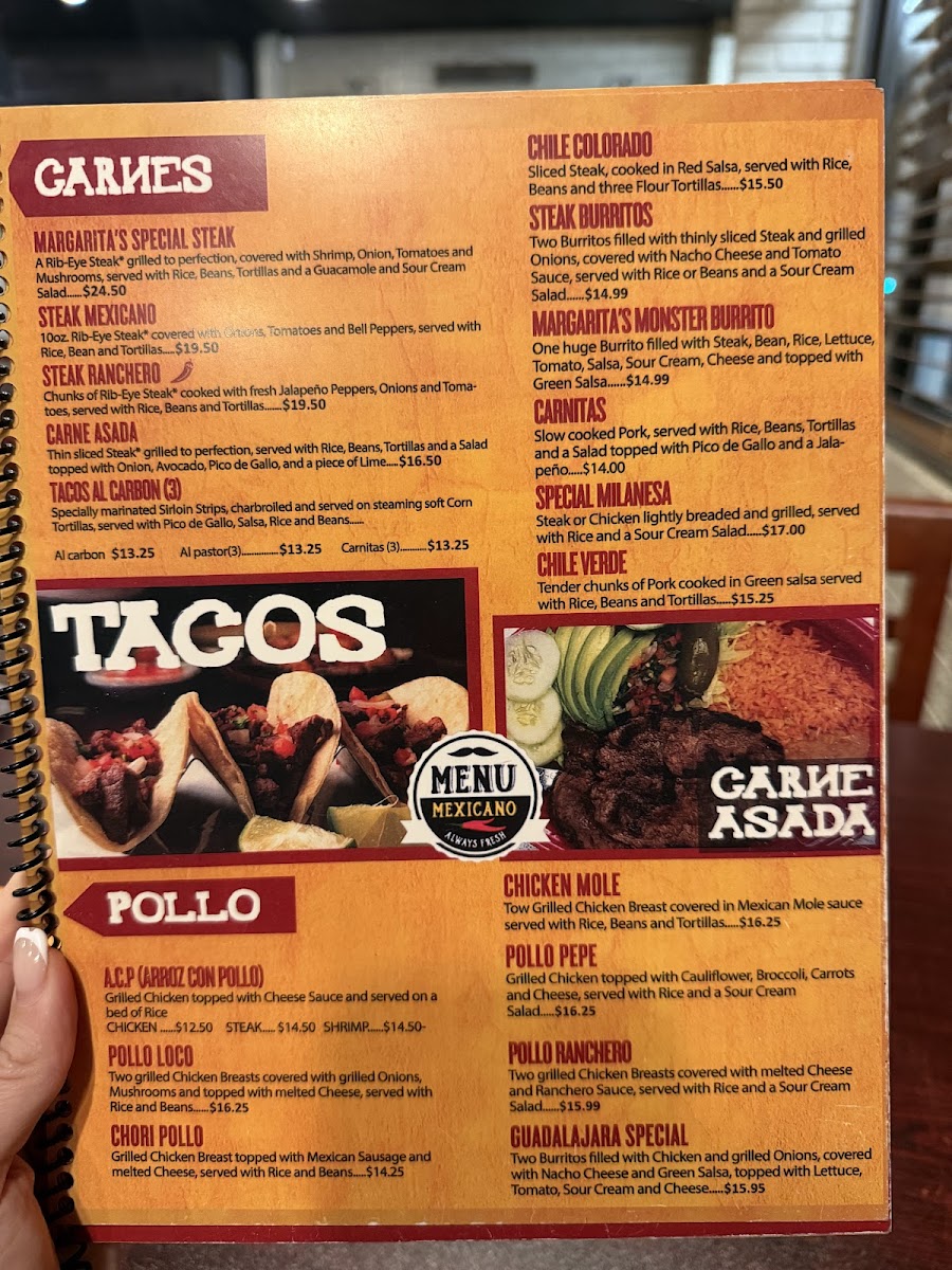 Margaritas Mexican Restaurant Menu
